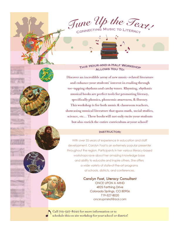 Discover an incredible array of new music-related literature and enhance your students’ interest in reading through toe-tapping rhythms and catchy tunes. Rhyming, rhythmic, musical books are perfect tools for promoting literacy - specifically phonics, phonemic awareness, and fluency. This workshop is perfect for both music and classroom teachers.